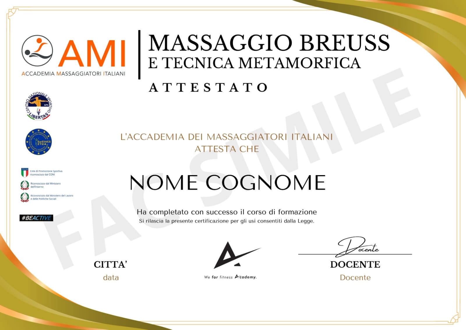 Un percorso professionale con certificazione europea EURETHICS / ETSIA e diploma AMI, riconosciuto dagli Enti di Promozione Sportiva.