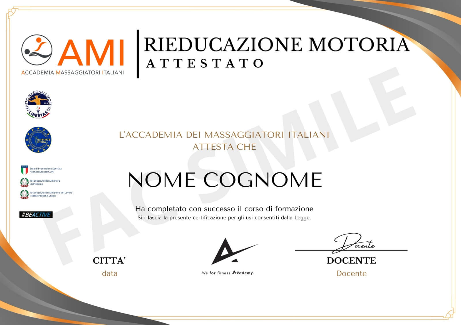 Il Protocollo AMI è stato depositato e riconosciuto ufficialmente dagli Enti di Promozione Sportiva italiani e approvato a livello europeo da enti parlamentari: una garanzia di qualità, serietà e valore professionale.